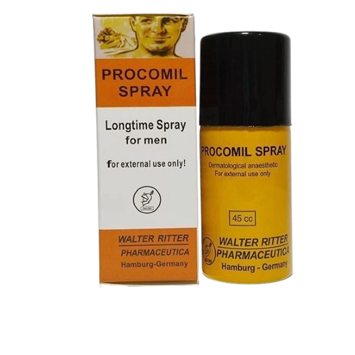 Procomil Delay Spray 45cc is a topical anesthetic designed to help men prolong sexual intercourse by delaying ejaculation. It achieves this by temporarily desensitizing the penile skin, thereby reducing sensitivity and helping to prevent premature ejaculation.